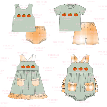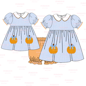 Tùy Chỉnh Ưa Thích Bé Cô Gái Mùa Thu Bí Ngô Với Bow Smocked Phù Hợp Với Trang Phục Purosun Trẻ Em Toddler Dễ Thương Halloween Smock Ngắn Bộ