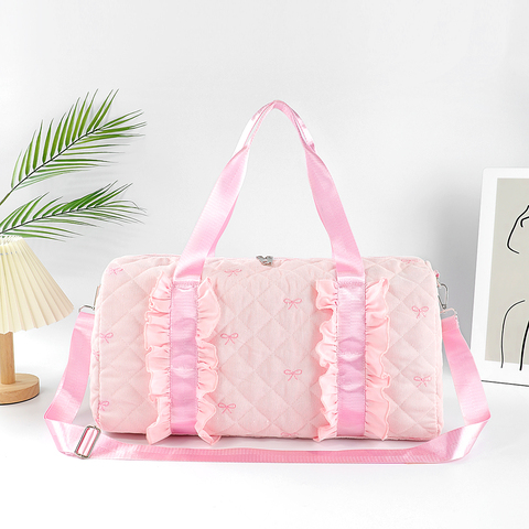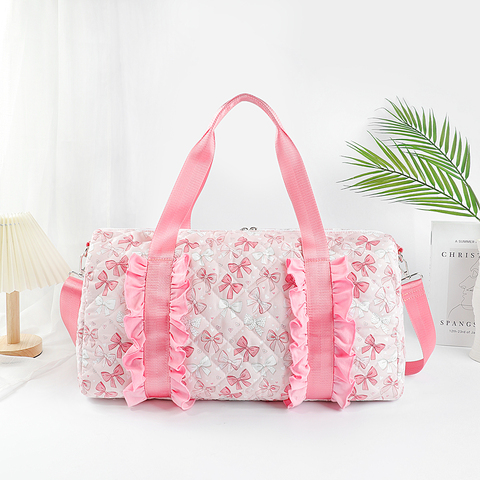 Atacado Meninas Duffel Bags Bow Bordado Outono Inverno Smocked Quilted Bag Viajando Ginástica Overnight Trendy Bags para Meninas