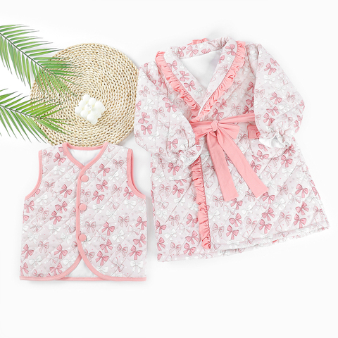 Nova Chegada Rosa arco meninas do bebê combinando conjuntos de roupas criança crianças acolchoado roupas menina personalizado adorável algodão acolchoado casacos