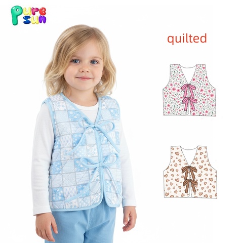 Puresun acolchoado jaqueta bebê menina primavera desgaste criança meninas floral acolchoado colete jaqueta crianças jaqueta