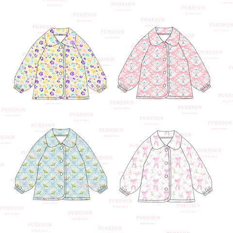 Puresun Crianças Roupas Outono Inverno Custom Girl Clothing Crianças Quilted Jacket Mardi Gras Little Girl Clothing Casaco Quente com Arcos