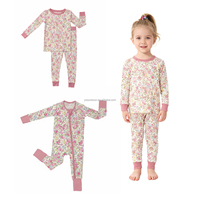 Atacado Kids Bamboo Viscose Meninas Pijamas Set Custom Kids Clothe Floral Bamboo Girl Clothes Set