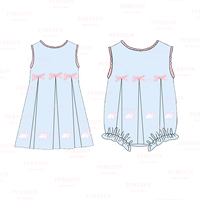 Nova Chegada Crianças Roupas Do Dia Da Páscoa Cruz Azul Bordado 100% Algodão Vestido Meninas Primavera Verão Smocked Vestidos Tecidos