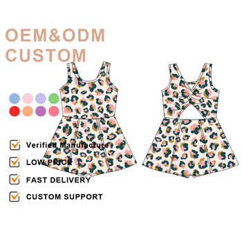 Novo Leopard Sports Dress para Crianças Meninas Impresso Verão Baixo Moq Personalizado Bonito Fitness Yoga Gym Vestuário Vestido para Crianças