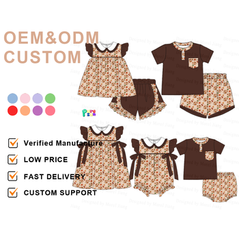 Yeni tasarım çocuk önlüklü futbol fırfırlı giysi French çocuklar oyun günü kardeşler eşleşen fransız düğüm giyim setleri